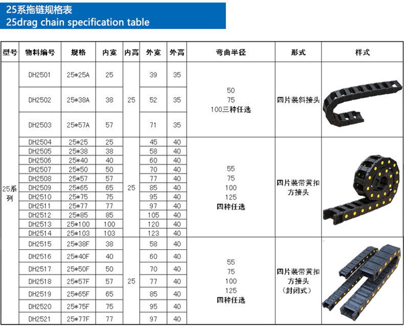 用途分類:25*25工程拖鏈