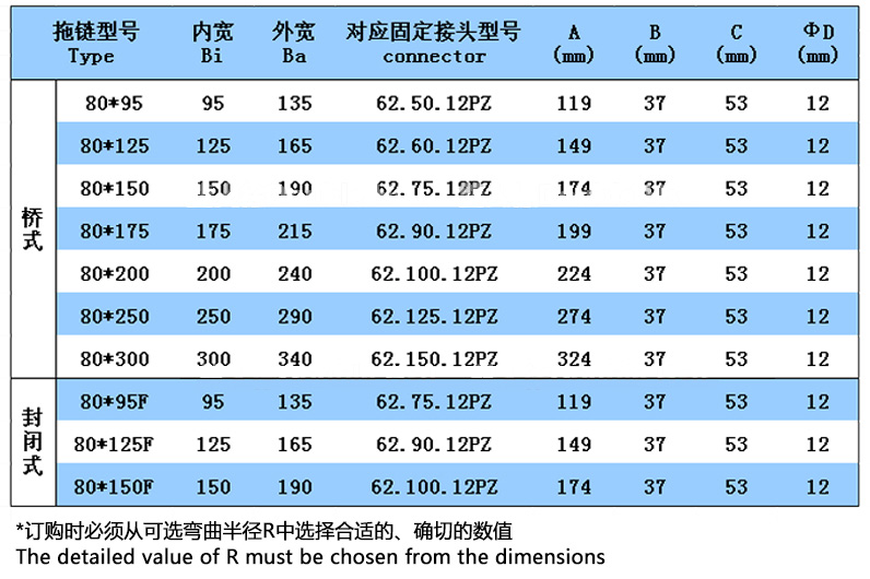 可選彎曲半徑R:150/200/250/300/350/400 MM、