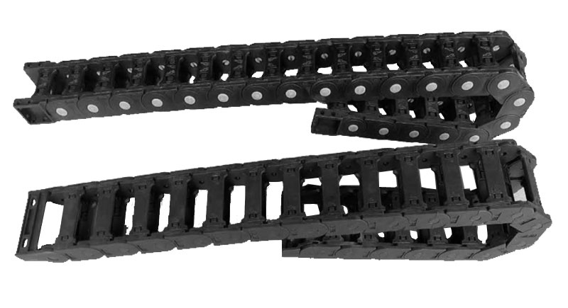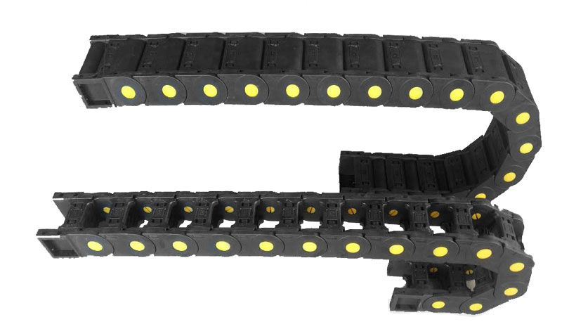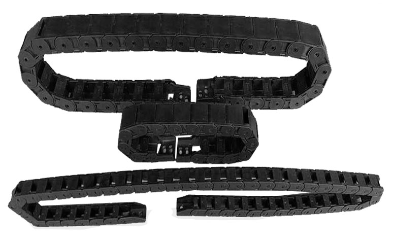 內高:選擇內置電纜,油管,氣管,水管等中粗的一根作為參考高度,加上至少10%的高度空間作為拖鏈內高。如果重疊按重疊后實際高度作為參考高度。內寬:選擇較粗的一些電纜,油管,氣管,水管等,其外徑之和作為拖鏈內寬的參考,并留有至少10%的寬度空間。彎曲半徑:選擇內置電纜,油管,氣管,水管等中的彎曲半徑作為參考值,并留有10%以上的空間。