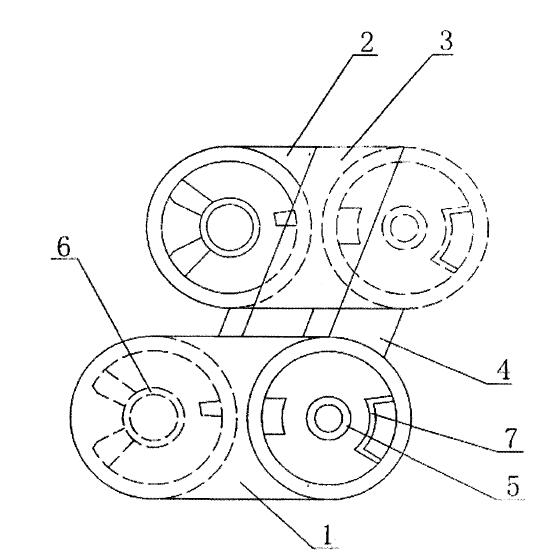 [0010]如圖所示,本實用新型由若干工程塑料制成的鏈節(jié)相互鉸連接組成,相鄰的鏈節(jié)之間設置封閉板80Fool 1 ]各鏈節(jié)主要由兩片相對設置、呈倒腰鼓形的板體1,2組成,兩片板體之間上、下面分別設置上、下接緊片3,4。